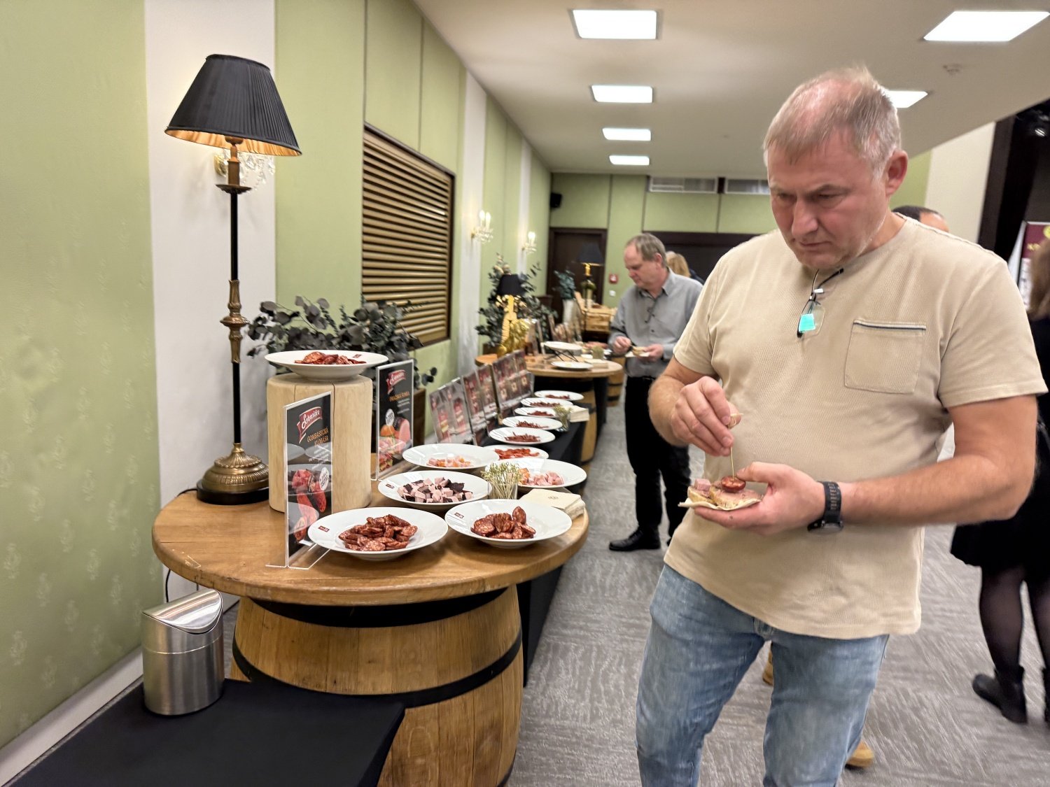 Součástí degustace je i vybrané občerstvení, které se s víny snoubí. V letošním roce najdou návštěvníci na bufetových stolech sýr Gran Moravia z BRAZZALE MORAVIA, krémové sýry z KRÁL SÝRŮ , zrající krémové sýry OLMÍN, vynikající uzeniny SCHNEIDER a skvělé paštiky PATÉ DU CHEF. Nechybí ani speciality z MADETA, tentokrát opět prezentované sympatiskou sýrařkou. Novinkou jsou klobásky a další masové speciality od KMOTR. K zakousnutí skvělé kváskové tousťáčky BREAD WAY.