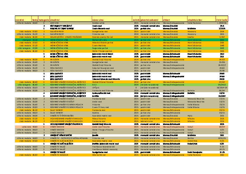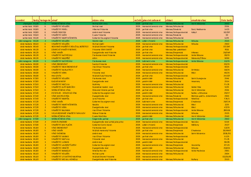 2.místo obsadila MORAVČÍKOVA VÍNA s průměrem 88,25 bodu a 3. místo VINAŘSTVÍ NA ŠPIČÁKU s průměrem 87,05 bodu.